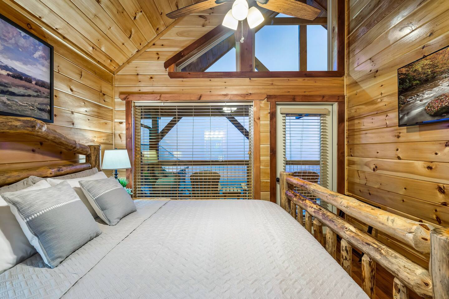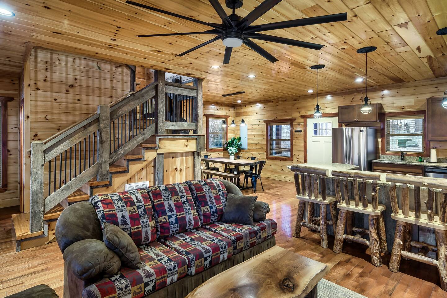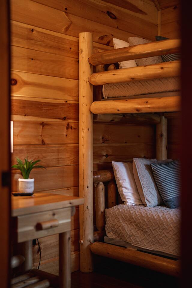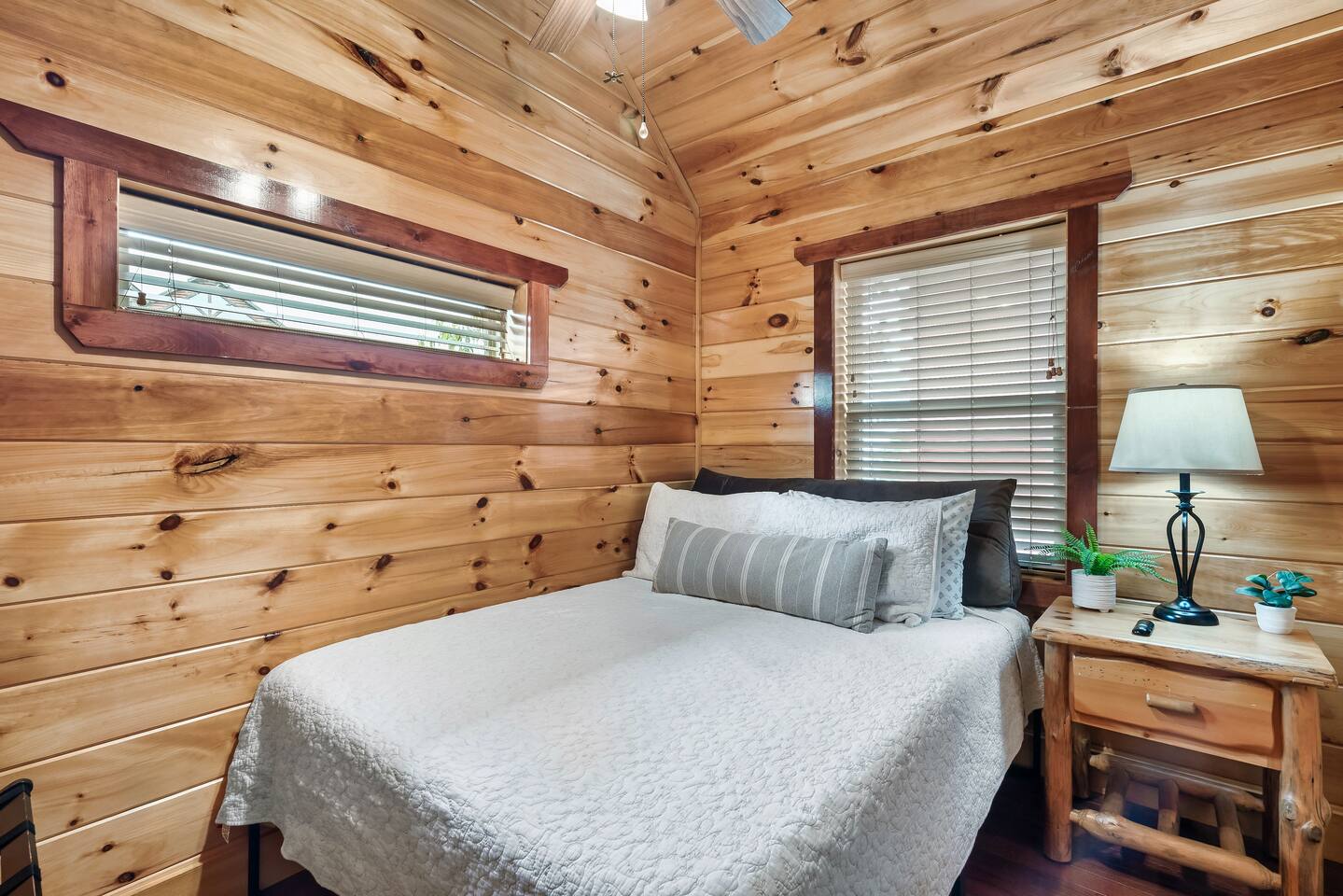 The Charmed Cabin is a cozy 2-story log cabin located in a resort community close to the Smoky Mountains! Comfortably sleeps 6 with a king bed, queen bed, & twin bunks!