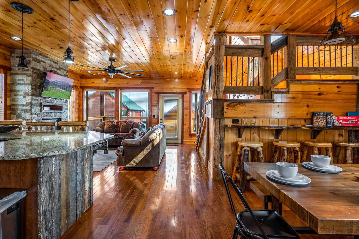 The Charmed Cabin is a cozy 2-story cabin located in the Hidden Springs Resort near Dollywood, Pigeon Forge, Gatlinburg & the Great Smoky Mountains! Enjoy the cabin’s two balconies, private hot tub & resort heated indoor pool. *Please save The Charmed Cabin by clicking on the heart in the top right corner. This will help you find it again & share with others.